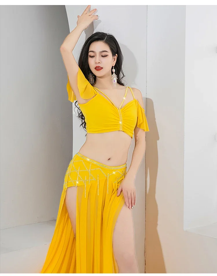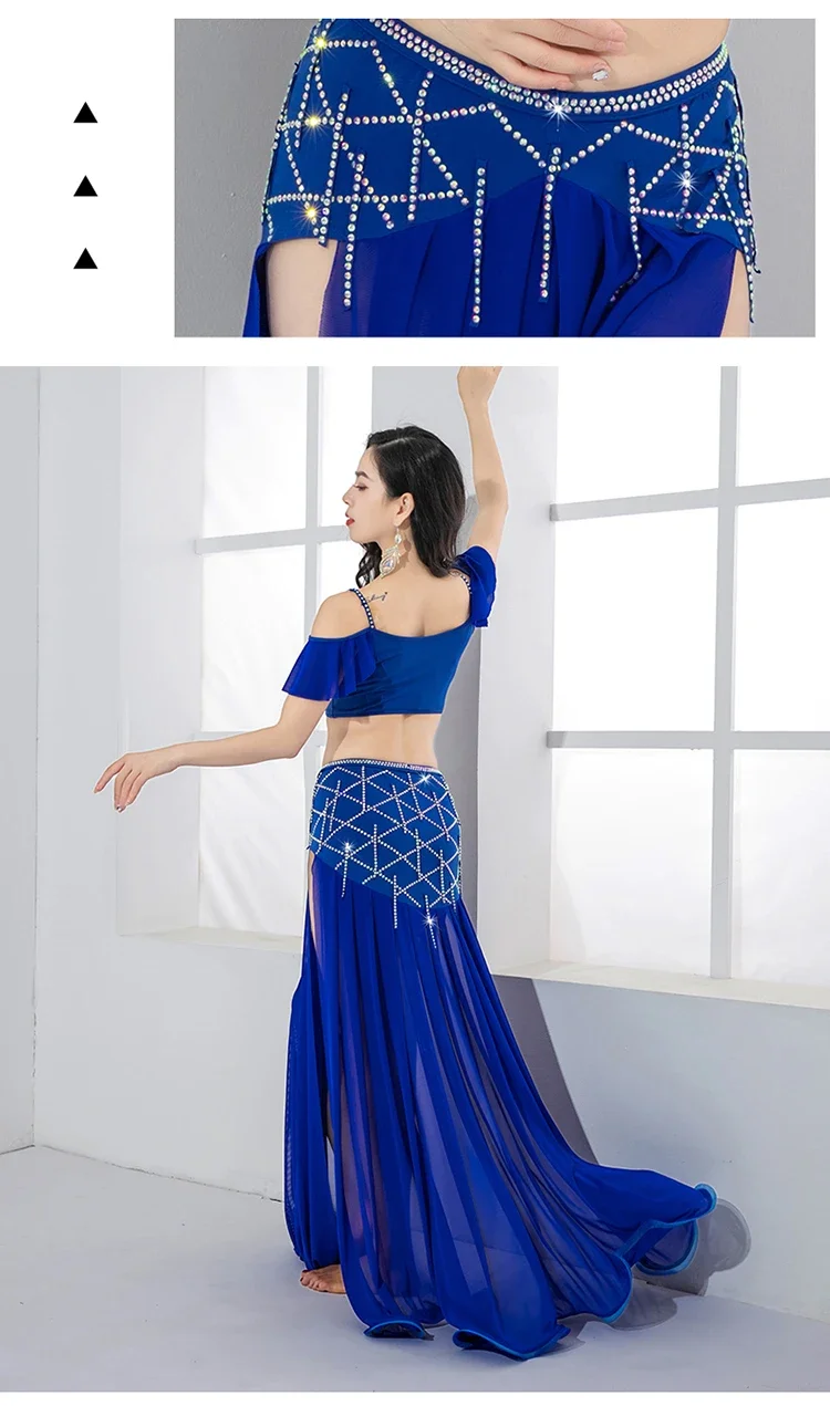 Goedkoop en korting water diamant top + mesh split rok licht luxe Oostelijke buikdans oefenpak prestatieset Buikdanskostuum groothandel. Koop rechtstreeks bij Shop5795972 Store.